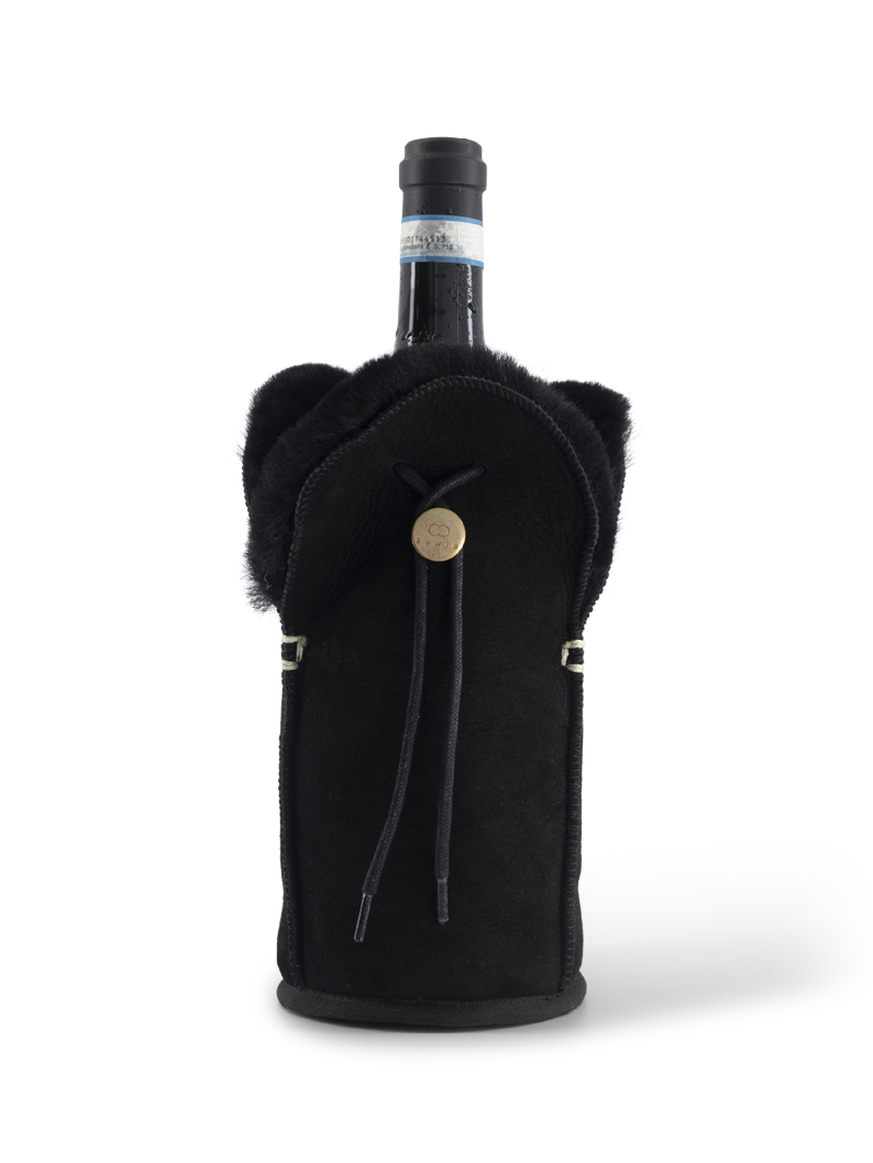 Der Weinkühler KYWIE besteht zu 100 % aus natürlichem Schaffell. So intuitiv es auch sein mag, dieser Kühler hält kühl!
