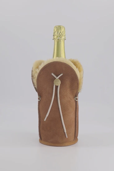Funktionen: Natürliches Schaffell | 4 Stunden Temperaturerhaltung | Handgefertigt in Europa | Passend für Champagnerflaschen von 0,7 l bis 1 l