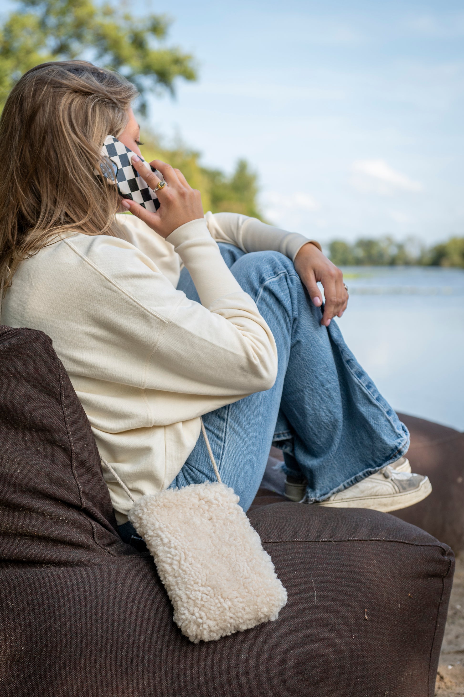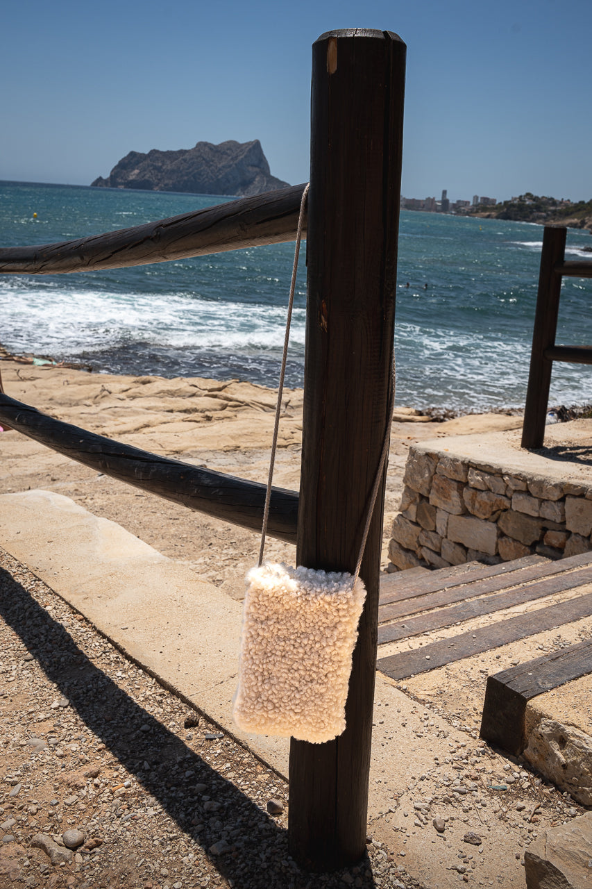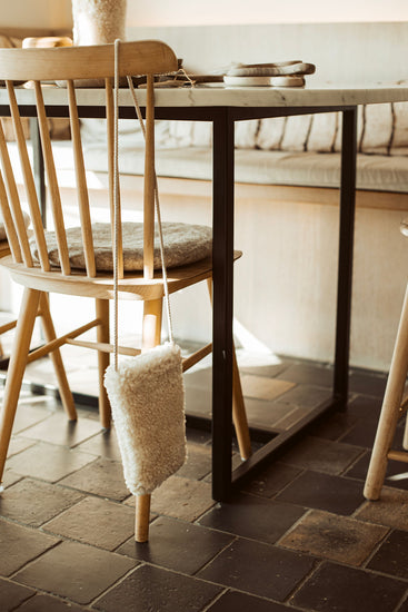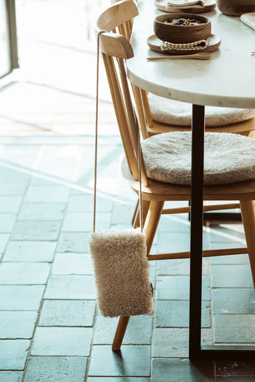 Der Weinkühler KYWIE besteht zu 100 % aus natürlichem Schaffell. So intuitiv es auch sein mag, dieser Kühler hält kühl!