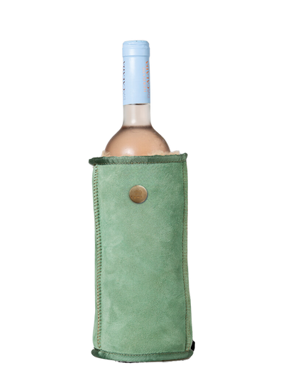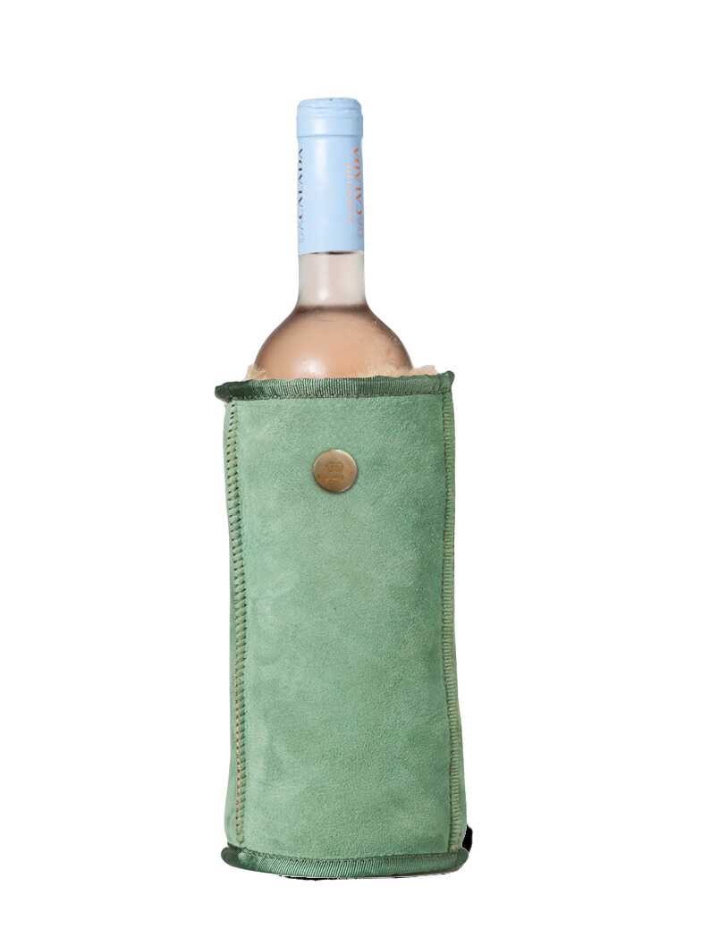 Der Weinkühler KYWIE besteht zu 100 % aus natürlichem Schaffell. So intuitiv es auch sein mag, dieser Kühler hält kühl!