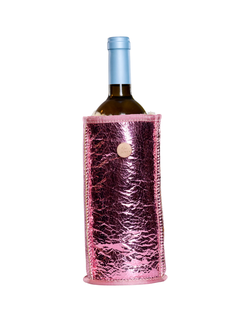 Der Weinkühler KYWIE besteht zu 100 % aus natürlichem Schaffell. So intuitiv es auch sein mag, dieser Kühler hält kühl!