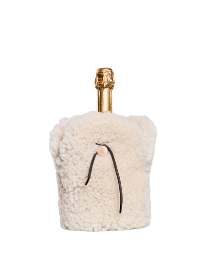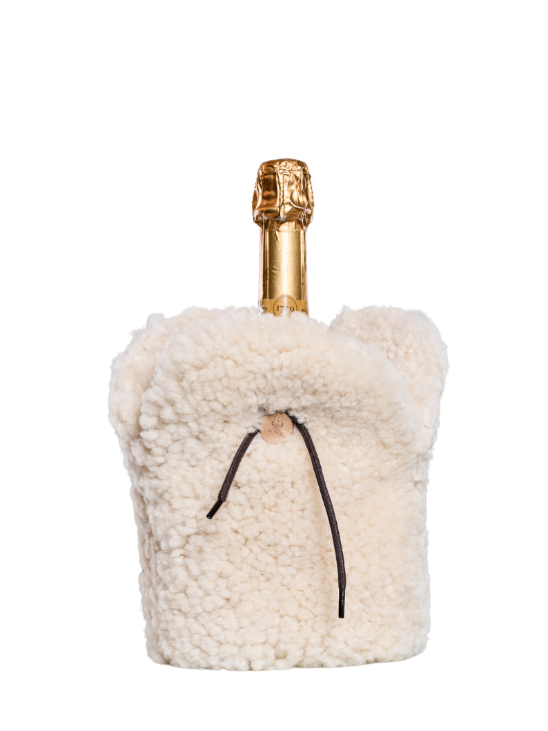 Der Weinkühler KYWIE besteht zu 100 % aus natürlichem Schaffell. So intuitiv es auch sein mag, dieser Kühler hält kühl!