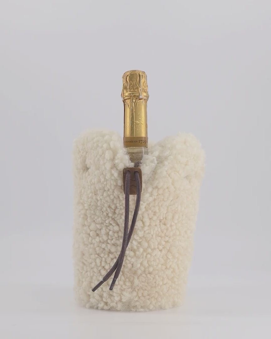 Der Kywie XL Champagne Cooler ist eine Tragetasche aus Schaffell, die vorgekühlte, extra breite Flaschen wie Ruinart kühl hält. Die natürlichen Isoliereigenschaften der Wolle halten die Temperatur von Champagner auch nach dem Entleeren der Flasche lange aufrecht. Vorgekühlter Champagner 4 Stunden lang auf der gewünschten Temperatur! Dieser einzigartige natürliche passive Kühler nutzt die inhärenten Bio-isolationseigenschaften von Schaffell.