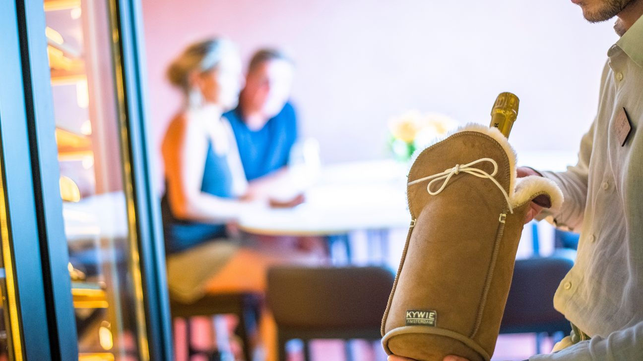 We love to bring you as close to nature as possible with gastronomy. A passive cooler, in sheepskin from our beloved island Texel is a match made in heaven. We've been serving reds and whites in it daily.