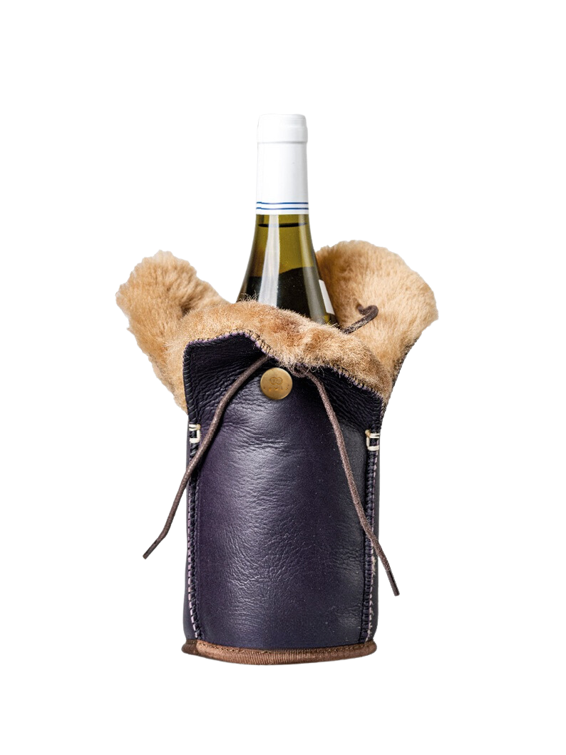 kywie Champagne cooler is an ingenious tote handcrafted from 100% natural sheepskin that keep your pre-chilled Champagen, Burgundy, sparkling wine, Ciders and Spirits perfectly cold, even hours after you’ve opened the bottle. Thanks to the remarkable bio-insulating properties of wool and the airlock cord around the bottle’s neck, you can savor every sip at the ideal temperature.