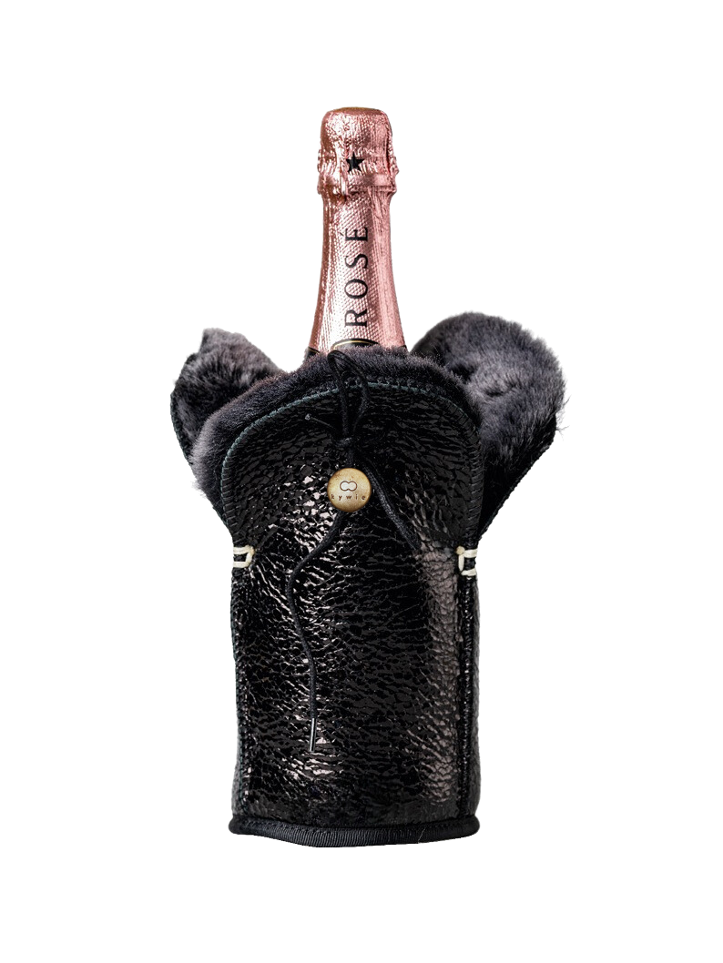 kywie Champagne cooler is an ingenious tote handcrafted from 100% natural sheepskin that keep your pre-chilled Champagne, Burgundy, sparkling wine, Ciders and Spirits perfectly cold, even hours after you’ve opened the bottle. Thanks to the remarkable bio-insulating properties of wool and the airlock cord around the bottle’s neck, you can savor every sip at the ideal temperature.