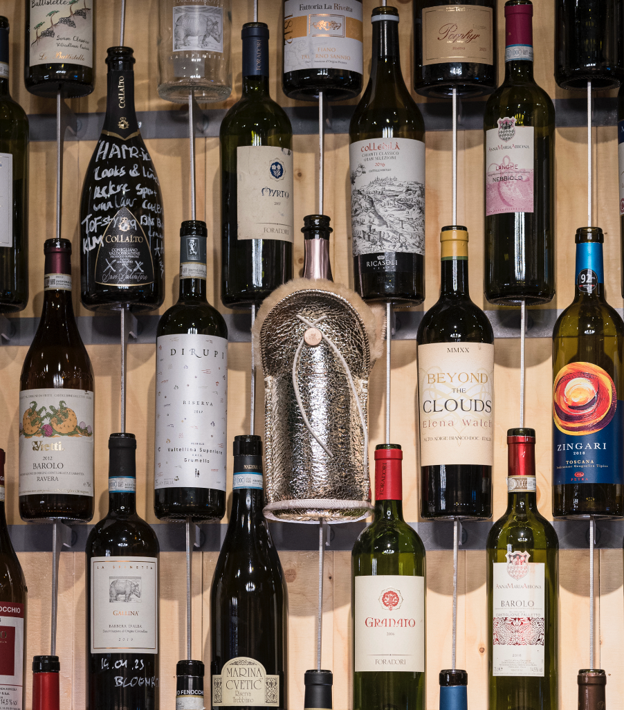 KYWIE wine cooler is made of 100% natural sheepskin. Counter intuitive as it may be, this cooler keeps cool!