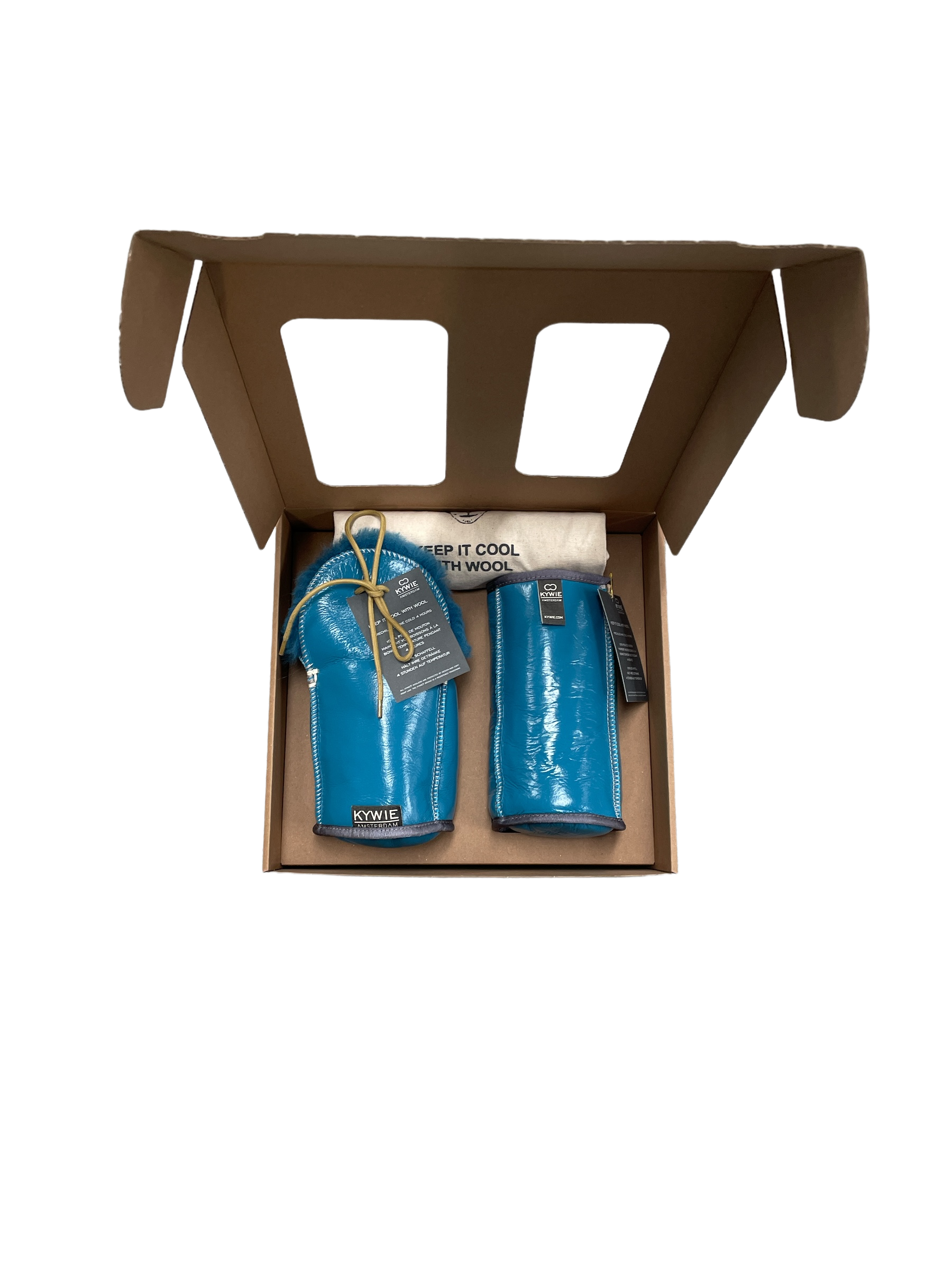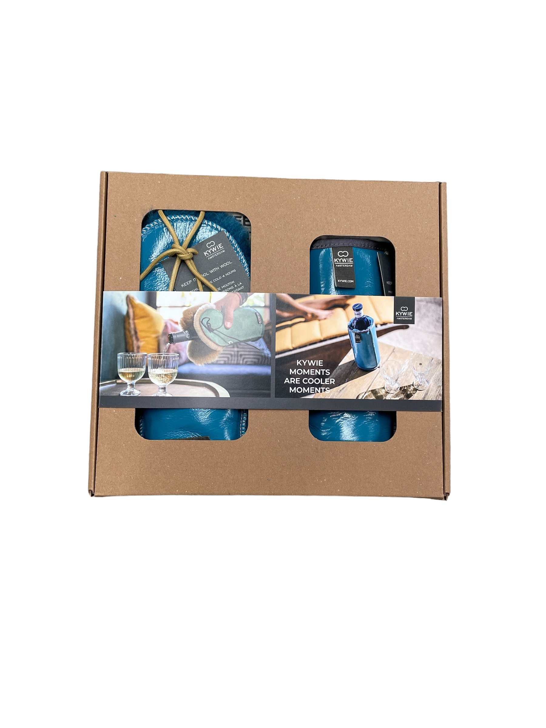 Luxurious cardboard packaging, consisting of one KYWIE Champagne Turquoise Laque and a KYWIE Wine Turquoise Laque.