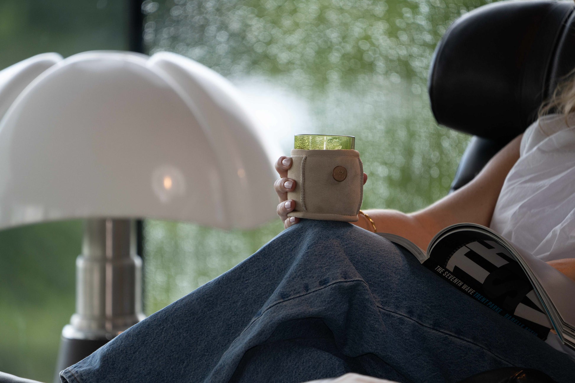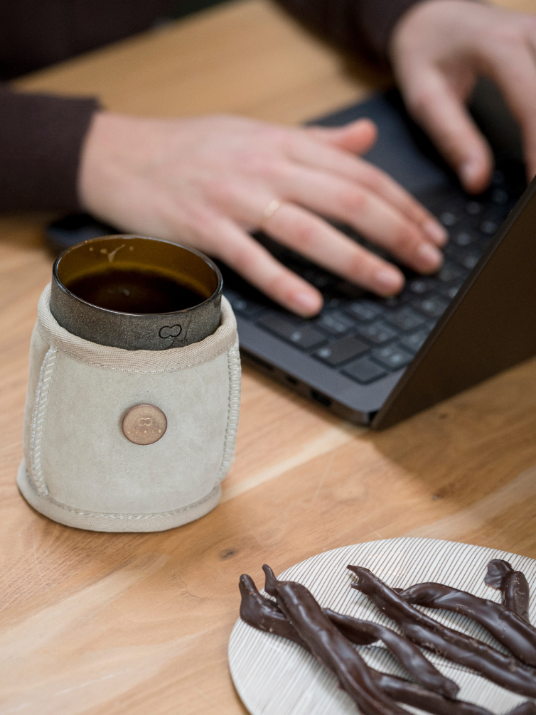 kywie Espresso - your warm companion for coffee and tea aficionados. This sheepskin wooler keeps your hot drinks warm with an easy and pleasant grip.