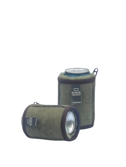 The kywie Koozie (“cozy”) is a cupholder or a stubby holder made of local sheepskin, a material that is soft and sustainable and completely biodegradable. Unlike other koozies, made of artificial materials, Kywie not only keeps your hands from warming the can, the beverage will stay at fridge temperature until the last drop. The optimal fit is for 330 ml cans, glasses and baby bottles.