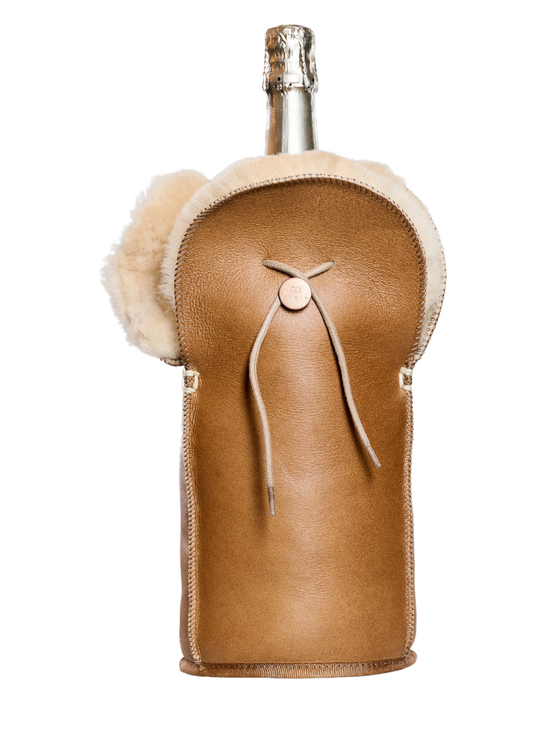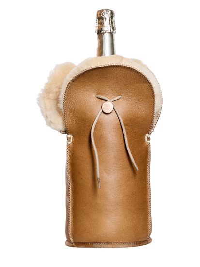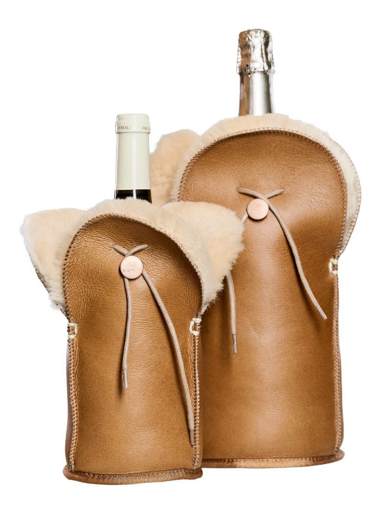 kywie magnum cooler is a unique sheepskin tote that keeps pre-chilled Magnum bottles at the desired temperature. The natural insulating properties of wool, in combination with the airlock cord around the neck of the bottle, will preserve the temperature of your 1,5 liter bottle. Pre-chilled, your magnum champagne, magnum wine or bourgogne bottle will stay cold for 4 hours or more! Bio-insulation to the max!