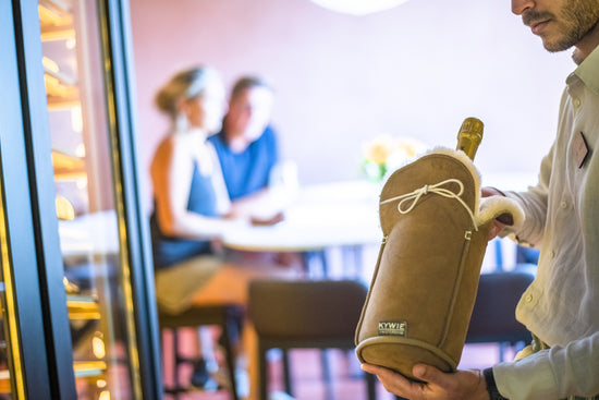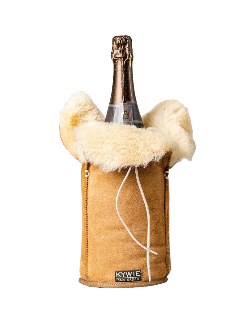 KYWIE Magnum cooler is a unique sheepskin tote that keeps pre-chilled Magnum bottles at the desired temperature. The natural insulating properties of wool, in combination with the airlock cord around the neck of the bottle, will preserve the temperature of your 1,5 liter bottle. Pre-chilled, your Magnum Champagne, Magnum Wine or Bourgogne bottle will stay cold for 4 hours or more! Bio-insulation to the max!