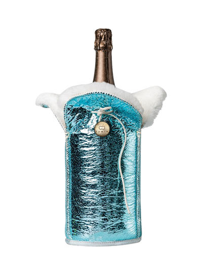KYWIE wine cooler is made of 100% natural sheepskin. Counter intuitive as it may be, this cooler keeps cool!