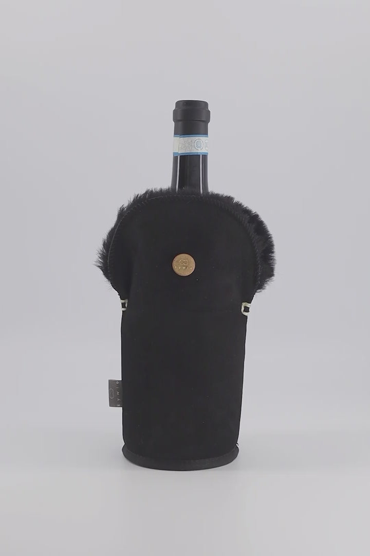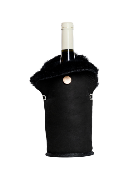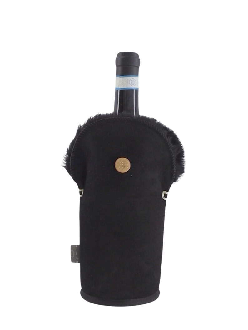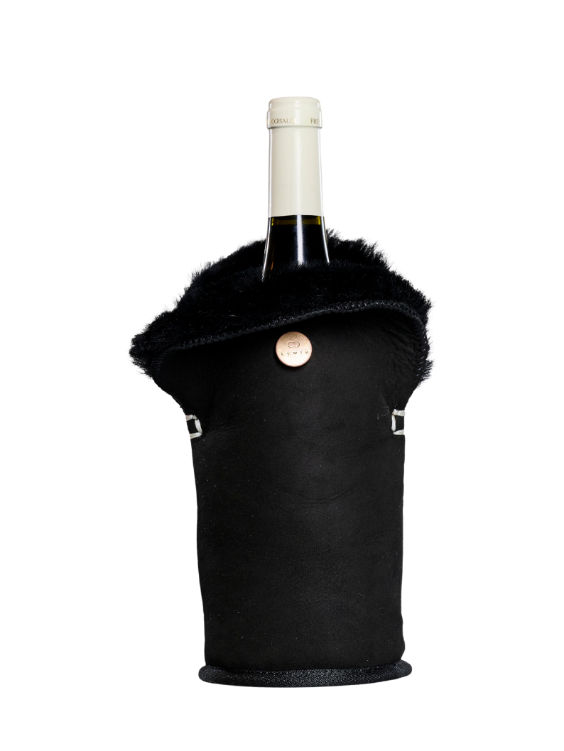 KYWIE wine cooler is made of 100% natural sheepskin. Counter intuitive as it may be, this cooler keeps cool!