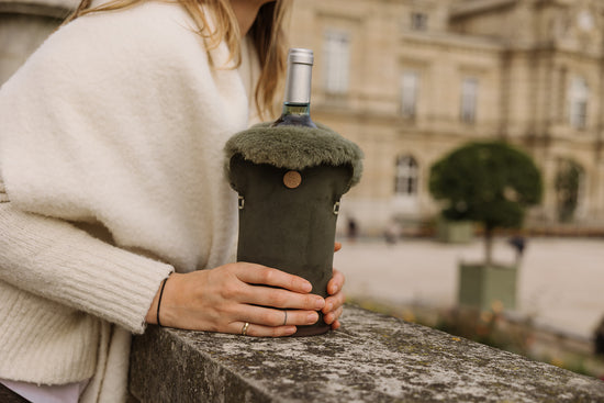 The natural sheepskin provides excellent insulation, keeping your pre-chilled bottle at a stable temperature for hours. Its graceful shape is reminiscent of the iconic Dutch tulip, a nod to our Dutch roots.