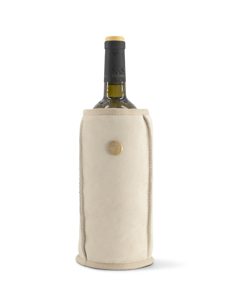 The KYWIE Wine Cooler is handcrafted in Europe from local natural sheepskin. This innovative passive cooler uses bio-insulation to keep pre-chilled wine cold for over 4 hours and other bottles such as waters or red wine at the desired temperature, enhancing the quality and drinking experience.