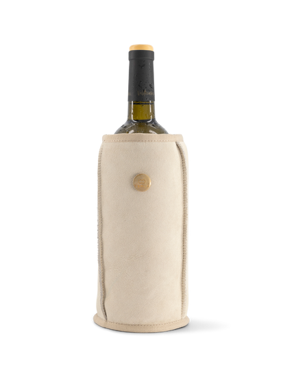 KYWIE wine cooler is made of 100% natural sheepskin. Counter intuitive as it may be, this cooler keeps cool!