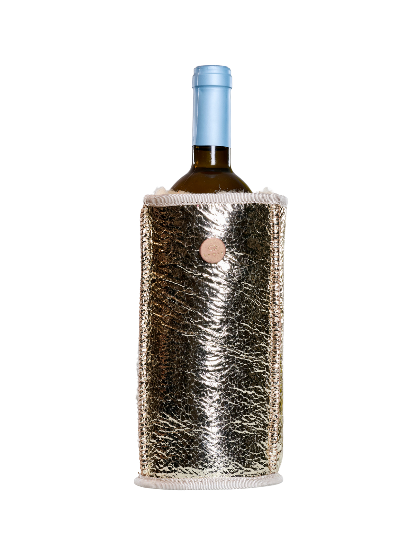 The kywie Wine Cooler is handcrafted in Europe from local natural sheepskin. This innovative passive cooler uses bio-insulation to keep pre-chilled wine cold for over 4 hours and other bottles such as waters or red wine at the desired temperature, enhancing the quality and drinking experience.