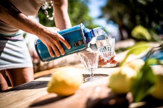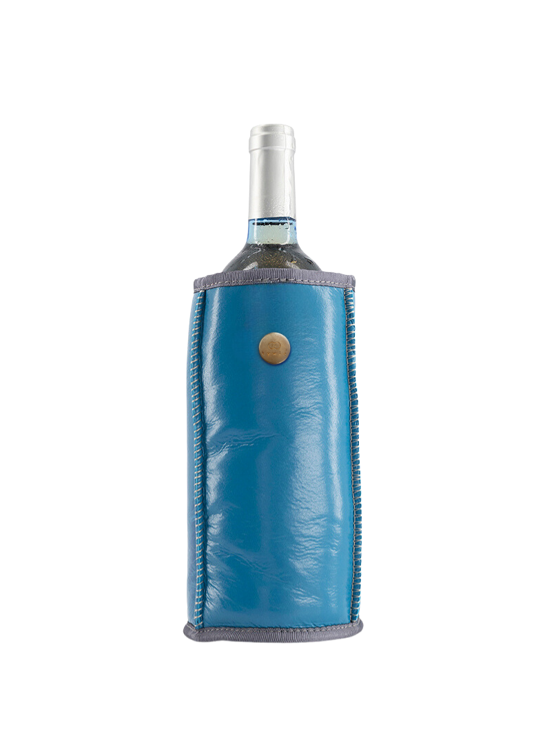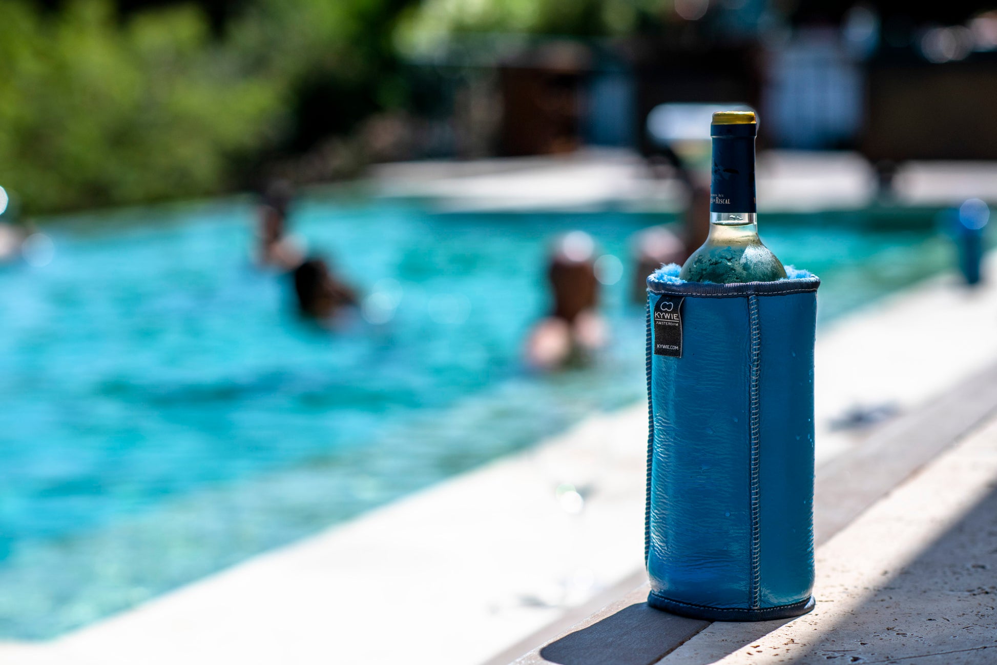 The kywie Wine Cooler is handcrafted in Europe from local natural sheepskin. This innovative passive cooler uses bio-insulation to keep pre-chilled wine cold for over 4 hours and other bottles such as waters or red wine at the desired temperature, enhancing the quality and drinking experience.